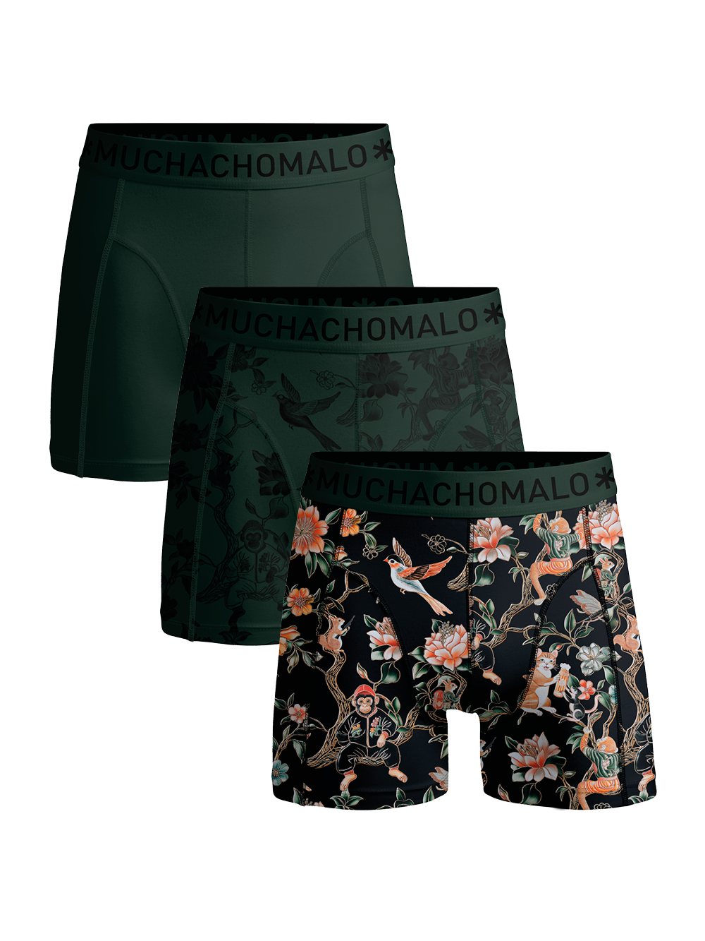 Muchachomalo Boys 3-Pack Boxer Shorts | Treefriends Print/Print/Green